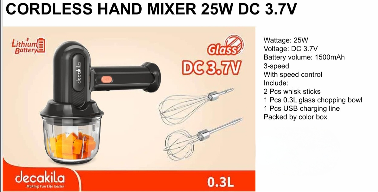 CORDLESS HAND MIXER 25W DC 3.7V
