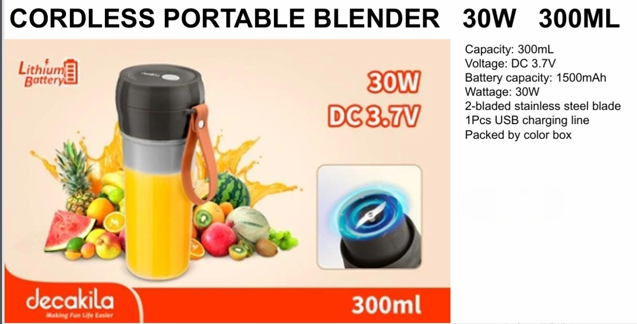 CORDLESS PORTABLE BLENDER 30W 300ML